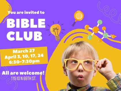 Bible Club is returning! Join us every Thursday beginning March 27 through April 24 at 6:30 pm.